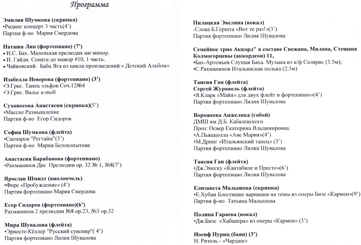 Сергей Журавель (флейта), Таисия Ган (флейта),Лилия Шувалова (фор-но) Участники концерта